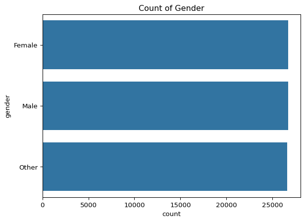 - Gender: roughly equal representation of Male and Female, with a small Other category.