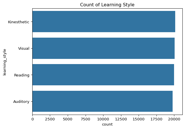 - Learning Styles: Kinesthetic most common (~20%), followed by Reading and Auditory.